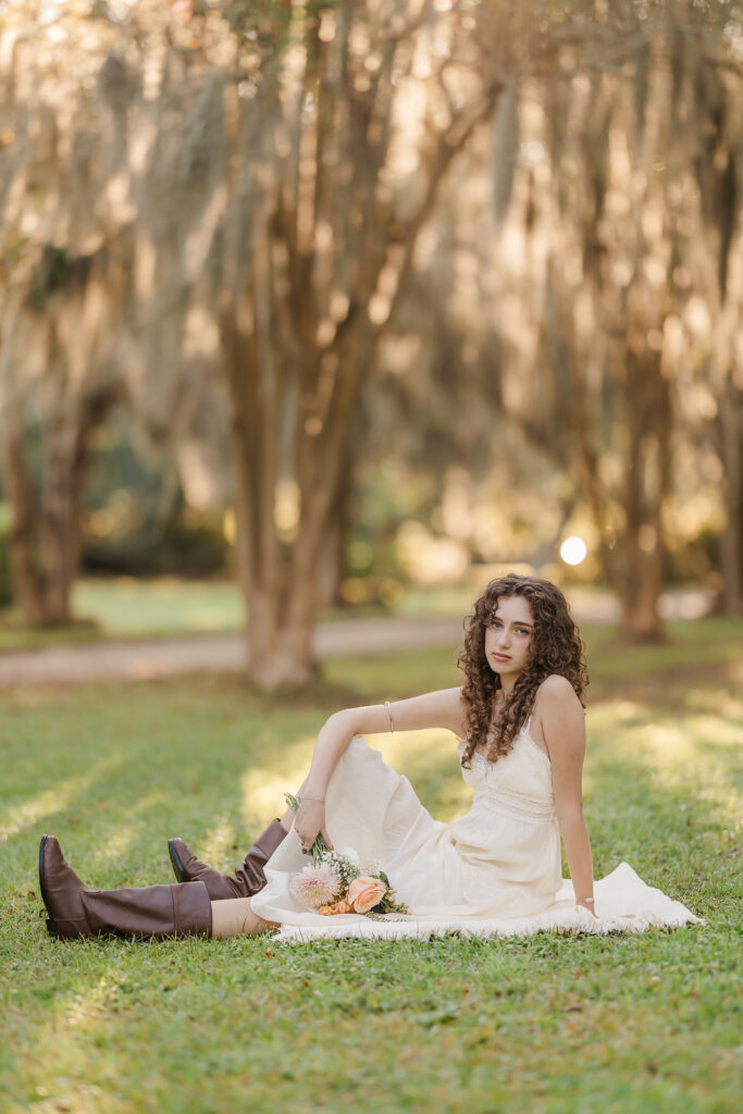 Whitney’s senior session in the meadow took place in a quiet little field surrounded by trees. It was the kind of spot that feels peaceful and a bit tucked away. The weather was perfect, and the soft light gave everything a warm and gentle look. Nothing felt rushed during the session, which let us take our time and enjoy the moment. Whitney picked a location that really fit her, and you could tell she felt comfortable from the start.