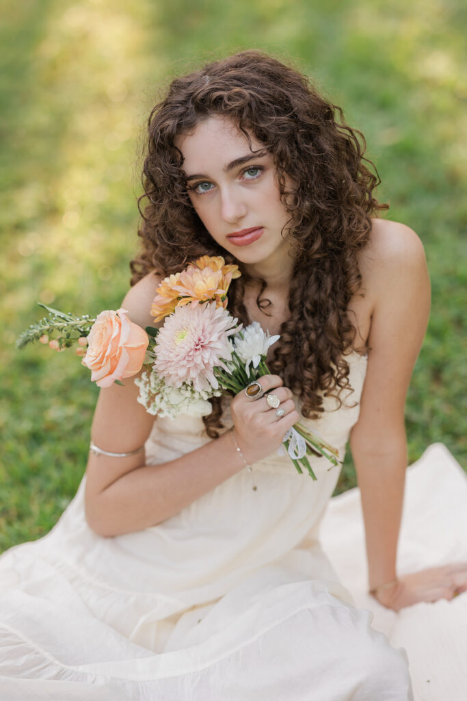 She brought along a beautiful bouquet that added a special touch to the photos. It wasn’t too fancy, but the colors and textures were just right. Holding the bouquet gave her hands something to do, which made the poses feel more natural. It also helped her relax, and that always comes through in the photos. The small details she added made the session feel personal and true to her.